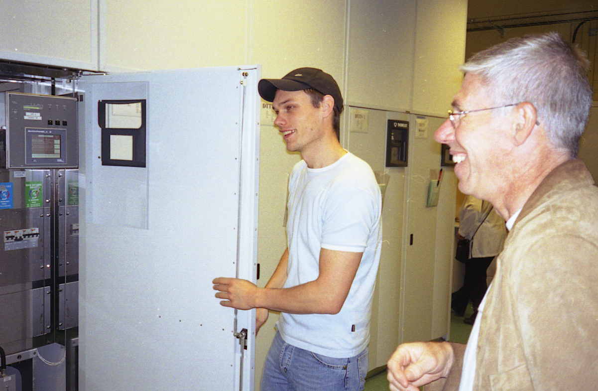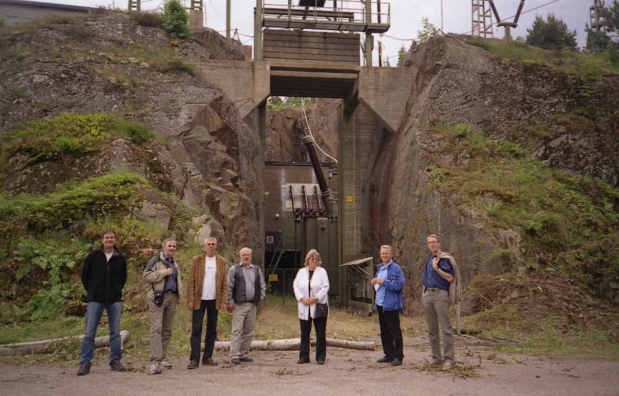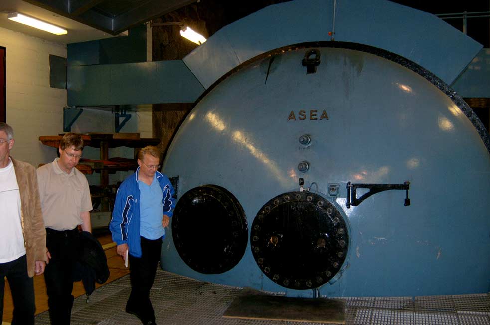 Här guidas vi av Bertil Hjärtmyr framför en av transformatorerna. Stora delar av ställverket är insprängt i berget.