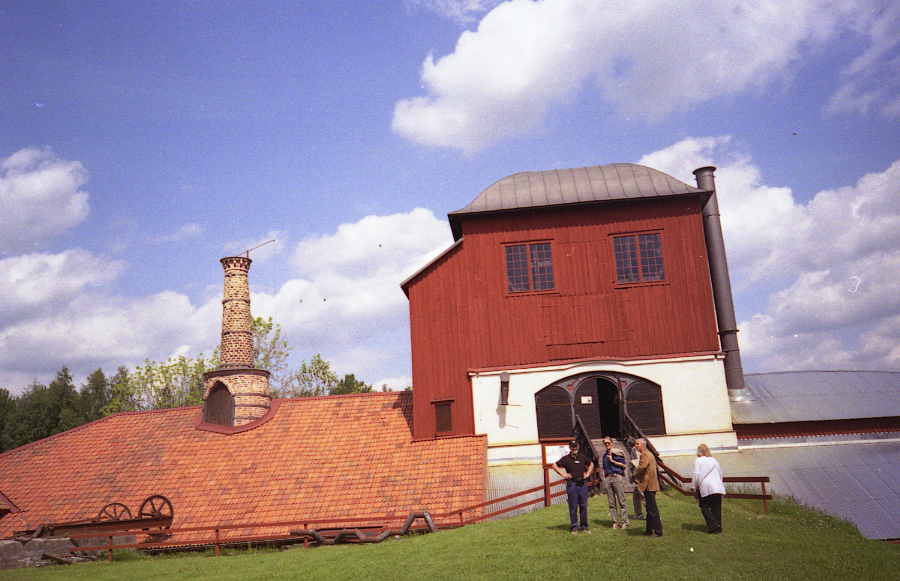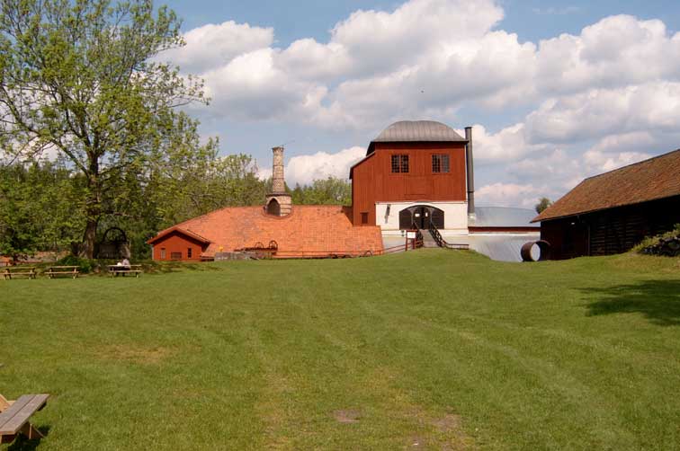 drift till 1953 och var därmed en av landets sista träkolsmasugnar. Masugnen finns i det faluröda trähuset, medan den för
