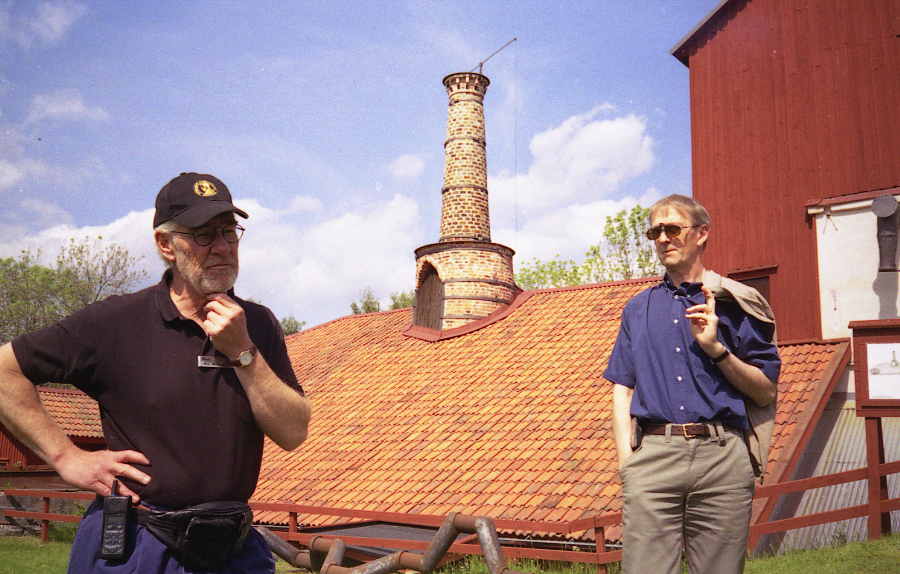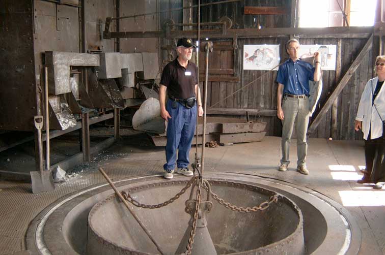 Efter gruvan kommer hyttan, där malmen blir till tackjärn. Guidningen fortsatte därför i Pershyttans hytta, som var i