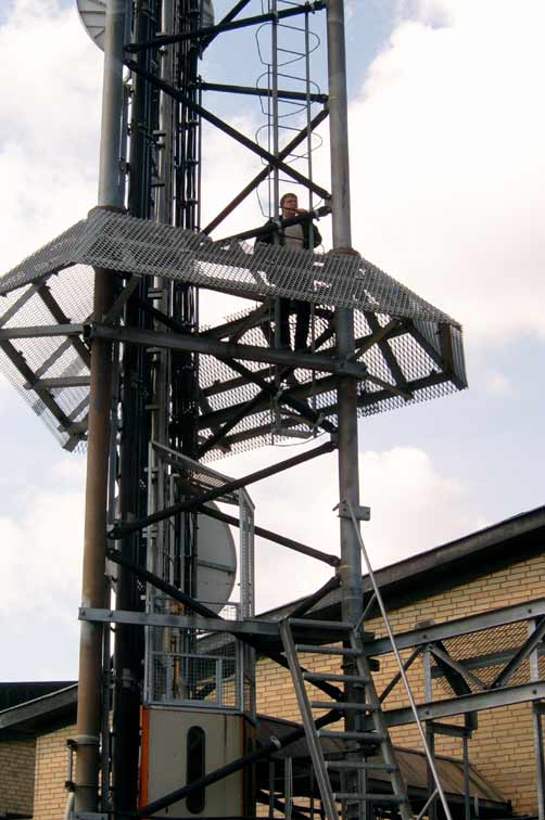 meter upp. Det är dessutom inte tillåtet att gå upp i masten under sändning p g a TV-sändarnas kraftiga mikrovågsstrålning.