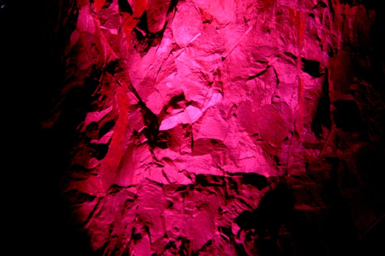 Berget är säkrat mot ras med järnstänger i tak och väggar.