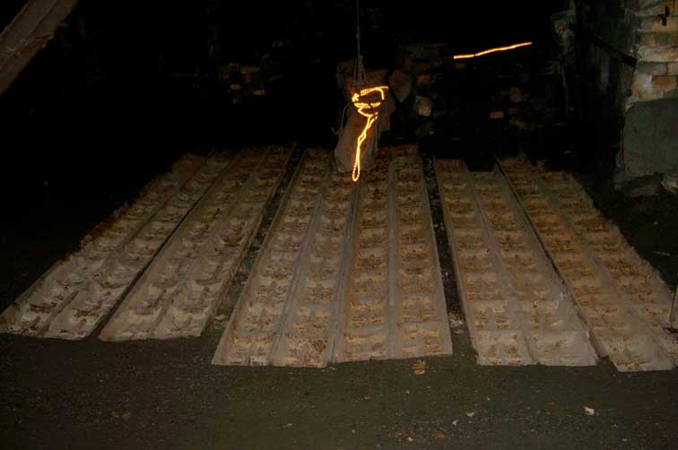...tackjärnet tappas och gjurs till tackor i formar eller direkt i sanden.