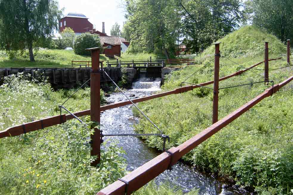 Hytta, fors och stånggång i ett sommarfagert Pershyttan.