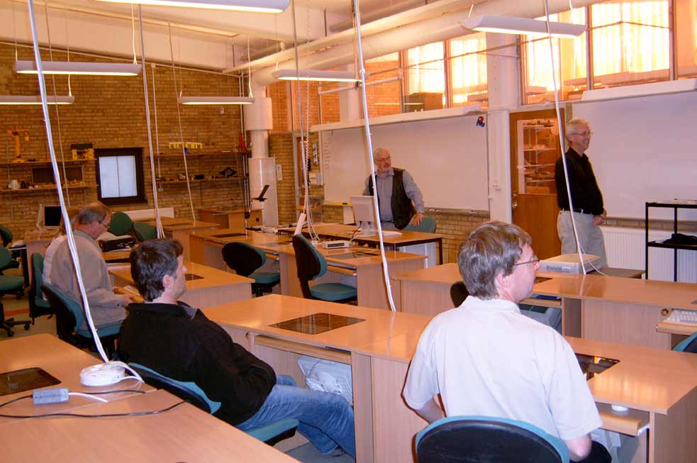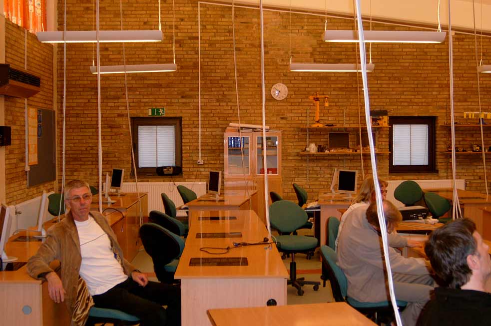 Resans sista studiebesök görs på Letälvsskolans gymnasium i Degerfors; Lenas och Yngves förra skola. Här viasar matte och fysikläraren Leif Ekberg en av data- och tekniksalarna.